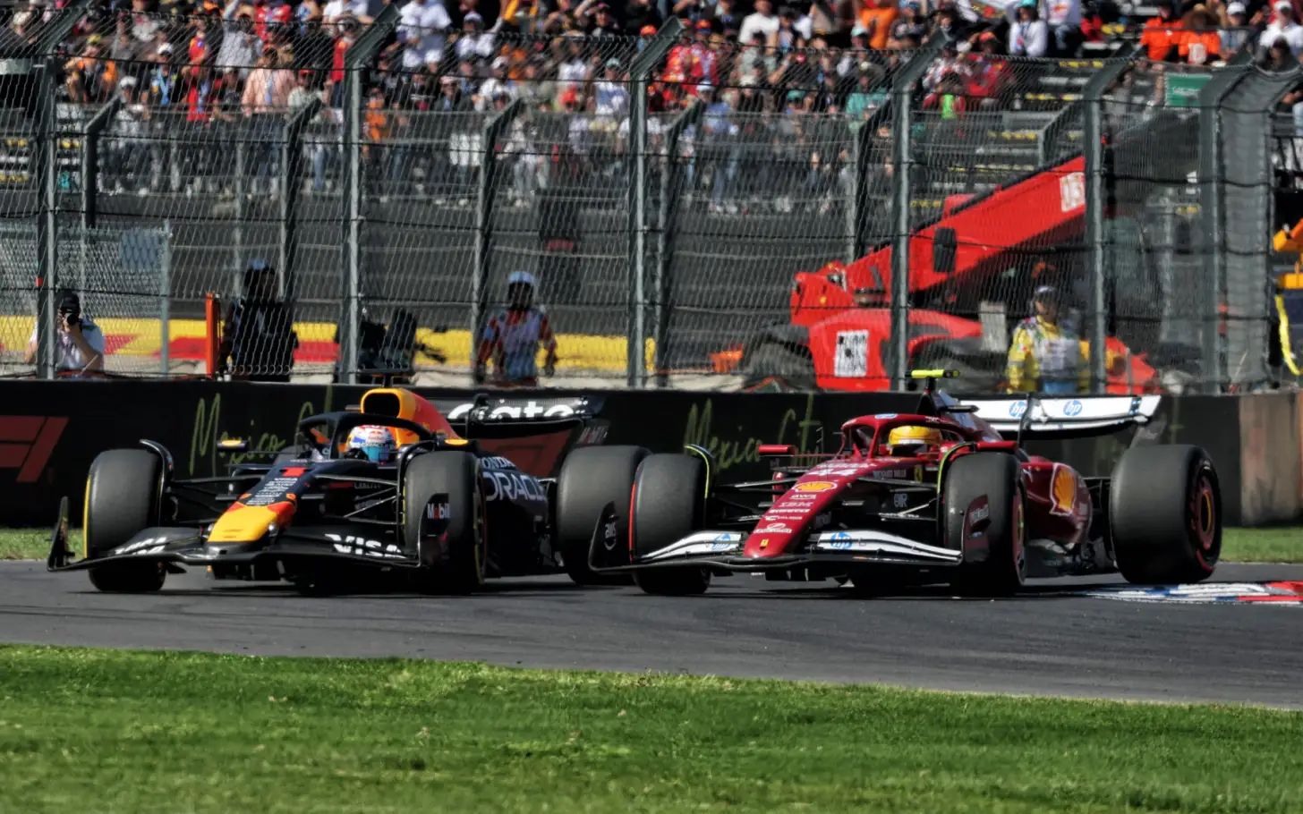 The seven-time world champion started from third on the grid and got away cleanly, immediately challenging for the lead as the field barreled into the first corner. In a chaotic opening sequence, both Charles Leclerc and Verstappen ran off the circuit and briefly onto the grass, while Hamilton held his line and managed to navigate through Turns 1, 2, and 3 cleanly. Despite this, he remained in third behind Lando Norris and Leclerc, who managed to rejoin ahead of him.