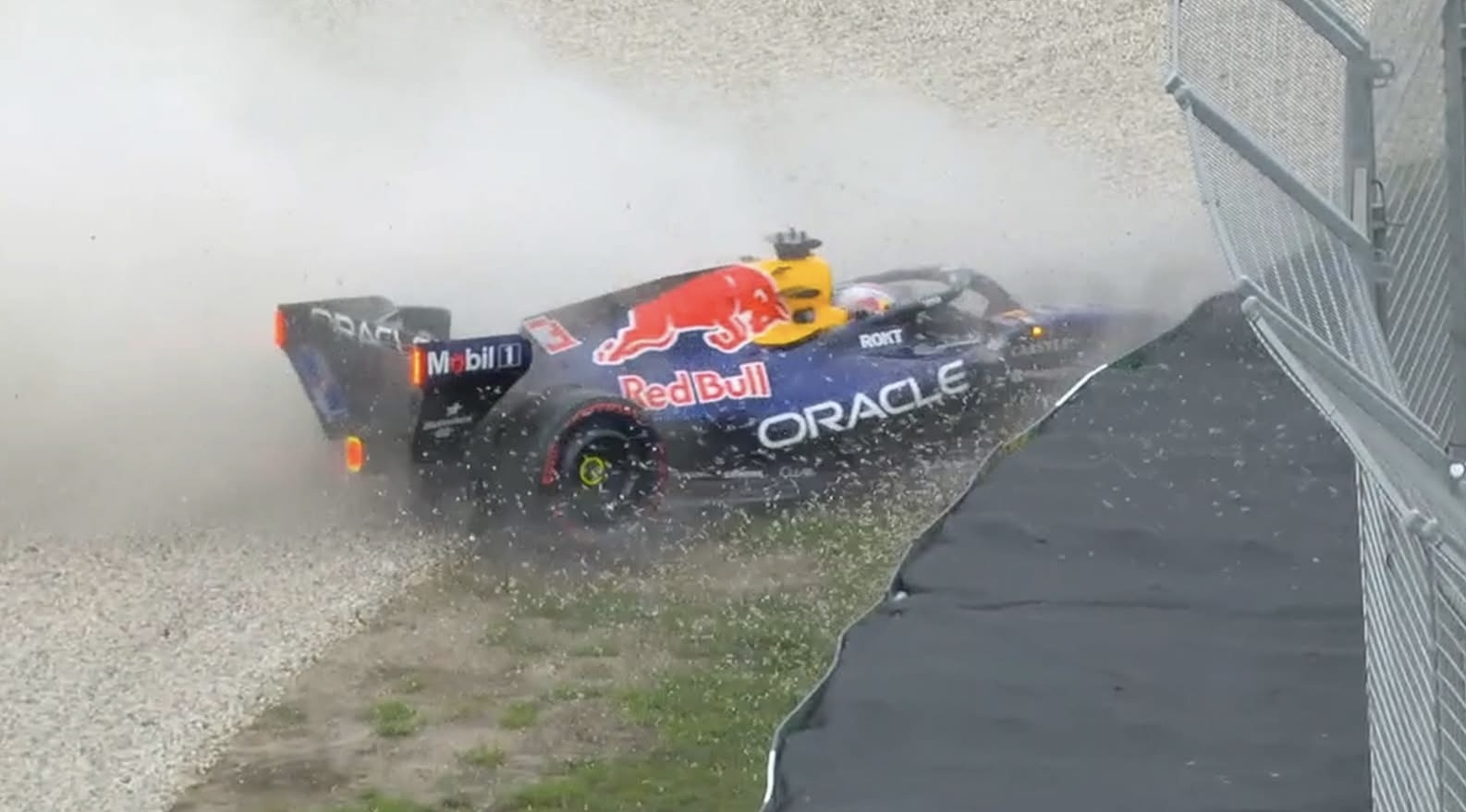 As Verstappen approached Turn 1 at high speed on a push lap, the rear of the car suddenly lost grip under braking. The RB22 snapped sideways, spinning violently before sliding off the racing line and into the gravel trap. With limited space to regain control, the car eventually slammed into the wall, ending his qualifying session instantly.